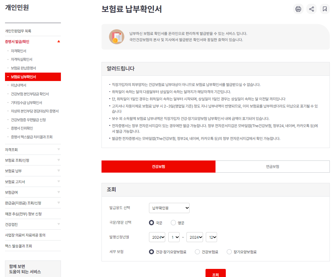 - 단, 피부양자일 경우 실제 납부하는 납부자의 납입확인서를 요청